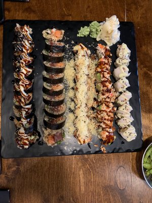 Iron Fish Sushi & Grill offers amenities such as Takeout, Delivery, Wheelchair Accessible, Good for Kids, Lunch, Happy Hour, Accepts Contactless Payments, Takeout, Delivery, Wheelchair Accessible, ensuring a comfortable and convenient experience for clients.